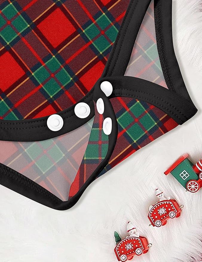 - đ°ăCute DesignăThe baby boy outfits features expandable shoulders, bringing more stretching space for the baby. The snap design in the crotch is convenient for mom to change clothes and diapers for the baby. Animal print and plaid patterns keep your baby boy looking super cute.