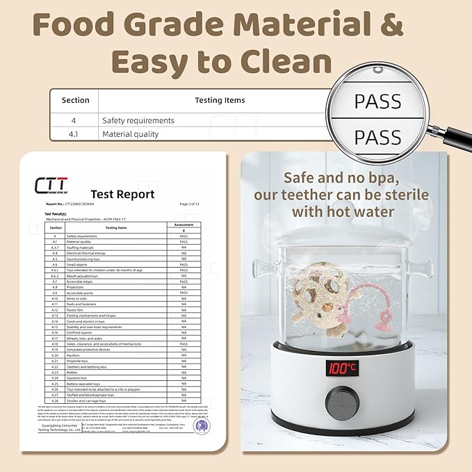 - Food Grade Soft Silicone - Teether toys is BPA free food grade silicone, which is easily cleaned with diswasher or handwash.
