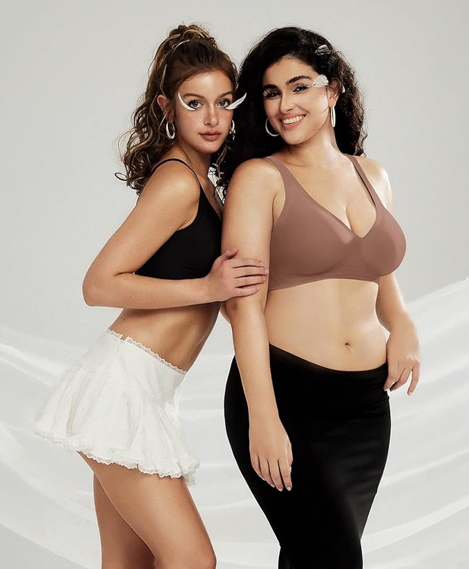 • Full Support Bras - These no-wire bras feature a "W-shaped" and innovative 3D supportive technology formed by liquid jelly band, providing full support for your breasts and creating a full, natural-looking chest without the discomfort of a traditional underwire bra. The widened side of the bras with jelly band can effectively conceal excess fat.