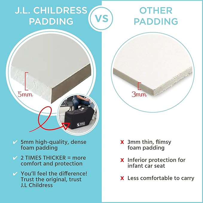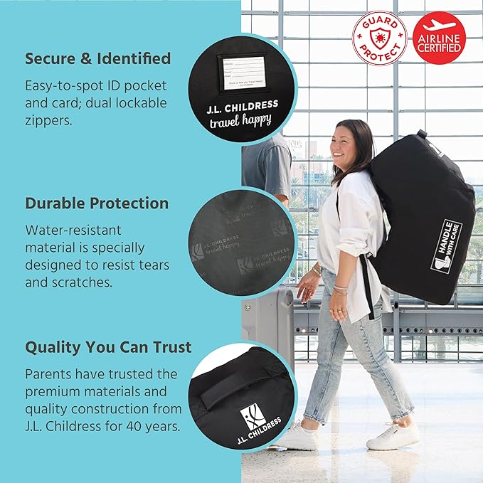 J.L. Childress Padded Infant Car Seat Bag - Travel Bag for Airplane, Fits Most Baby & Infant Car Seats, Compatible with UPPAbaby, Nuna, & Chicco, Airport Accessories, AirTag Compatible- Premier, Black