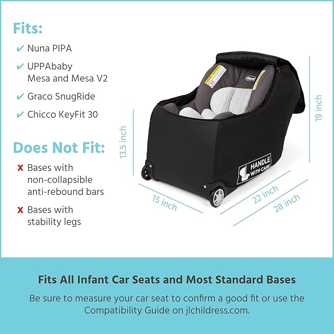 - INFANT CAR SEAT BAG FOR TRAVEL - This fully padded, car seat cover bag with wheels offers protection for your infant carrier car seat, whether checking it as luggage or gate checking it during flights
