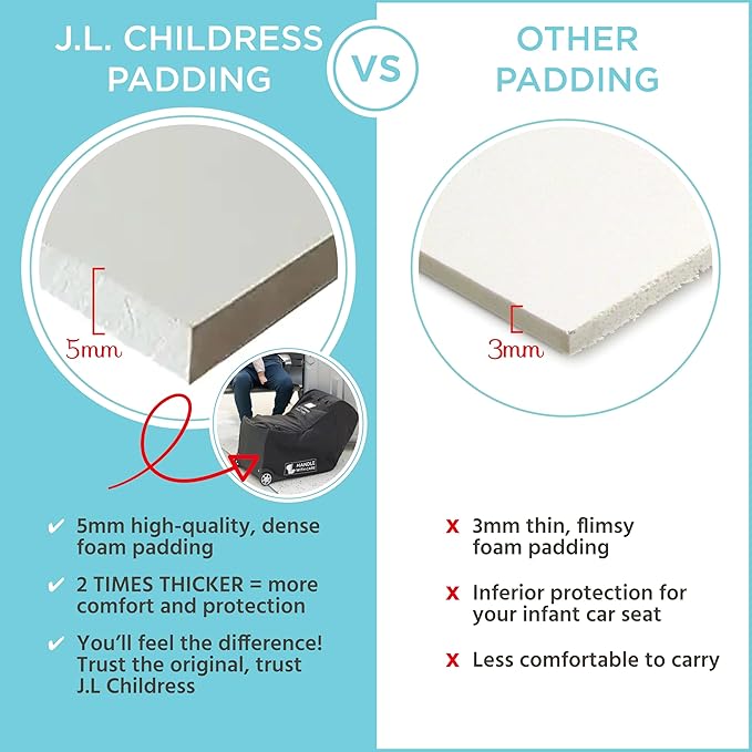 J.L. Childress Padded Infant Car Seat Bag with Wheels - Travel Bag for Airplane, Fits Most Baby & Infant Car Seats, Compatible with UPPAbaby, Nuna, & Chicco, AirTag Compatible - Premier, Black