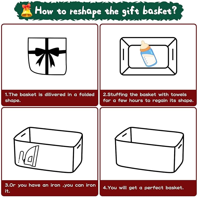 - Convenient recovery process: The small baskets for gifts is folded when arriving. After receiving the basket, you can easily open it and place towels or clothes to regain its shape. If you have an iron at home, ironing can also help the cute storage basket recover to its best condition faster
