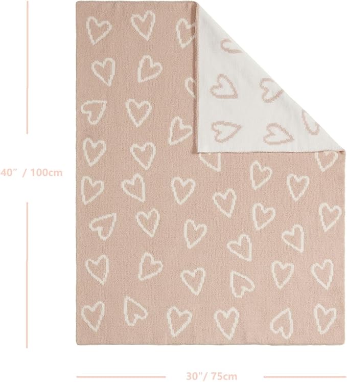 CREVENT 30"X40" Cozy Soft Warm Chenille Baby Blanket for Girls Boys, Newborn Essentials for Infant, Baby Shower Receiving Gift - Pink Heart