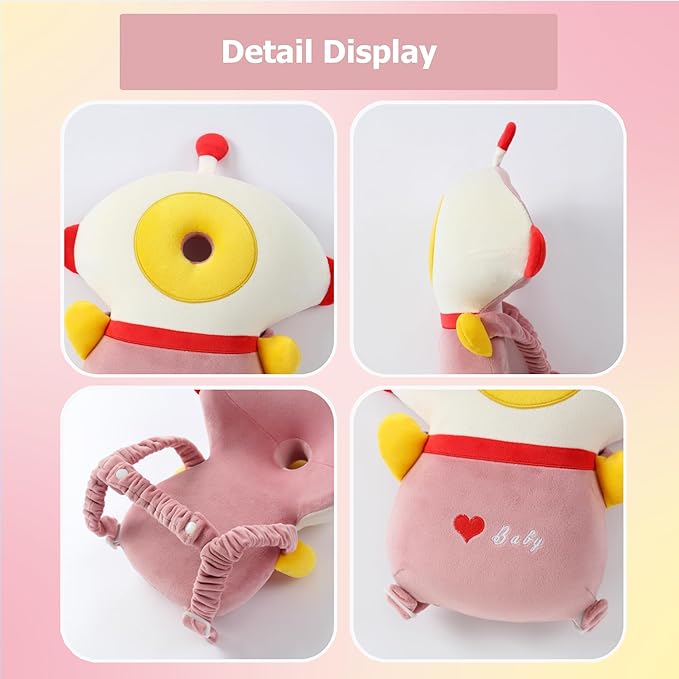 JunNeng Baby Head Protector Backpack Memory Foam, 3-Sided Fall Head Safety Protection, Pink Astronaut