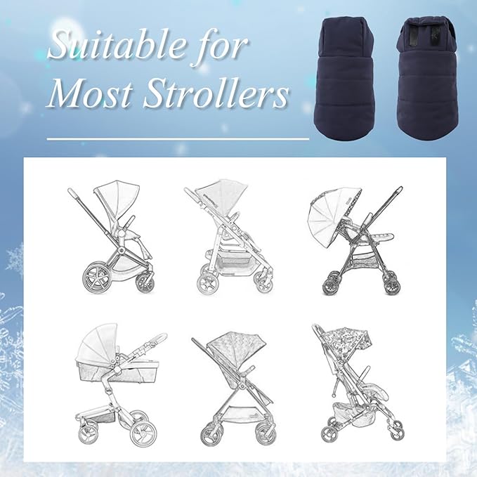 - SUPERB MATERIALS: These stroller mittens are crafted from polyester and lined with fleece to keep parents' hands warm in the frigid weather. With these versatile pram mitts, you can enjoy walking, jogging, hiking or strolling solo or with buddies on any terrain in temperatures as low as -4°F/-20°C without worrying about freezing hands.