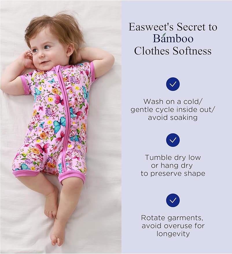 • Bamboo Viscose Fabric: This baby girl romper is crafted from soft and breathable bamboo viscose, ensuring comfort for your baby