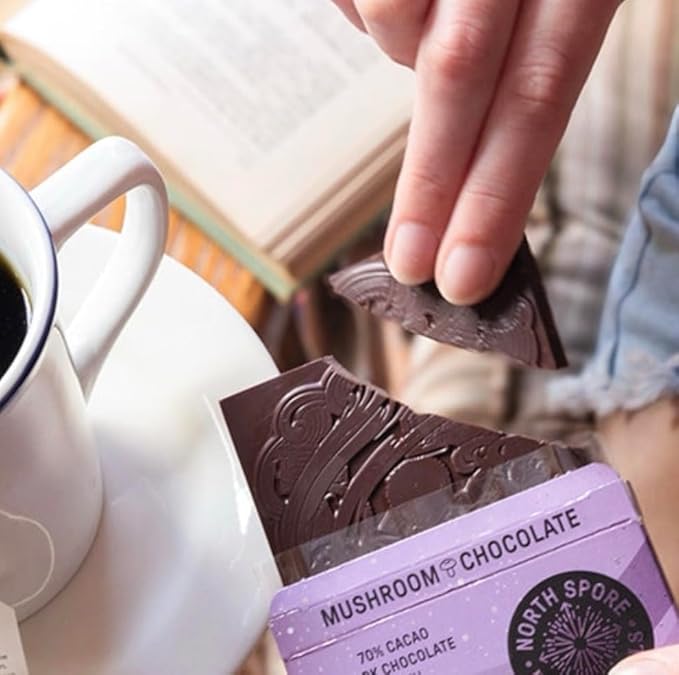 - Our functional, handmade, 70% dark chocolate bar is infused with 500mg of mushroom fruiting body extracts derived from Lion's Mane mushrooms.