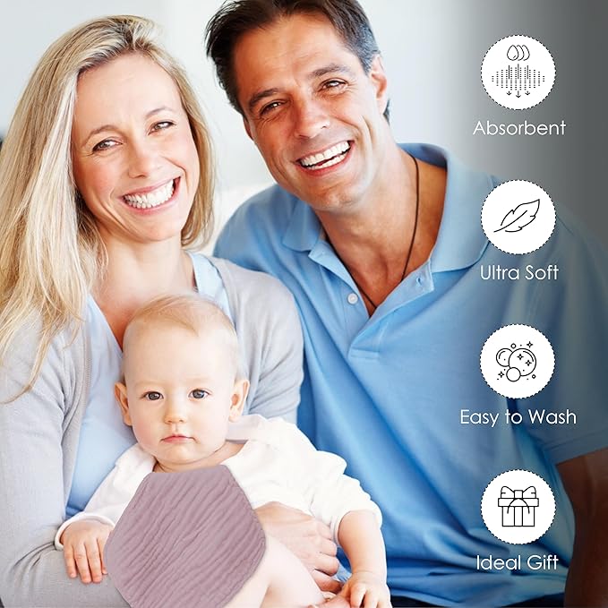 - Highly Absorbent and Breathable - Our muslin burp cloths and baby washcloths are highly absorbent. The breathable fabric keeps your baby dry and comfortable, making them ideal for various baby care tasks.