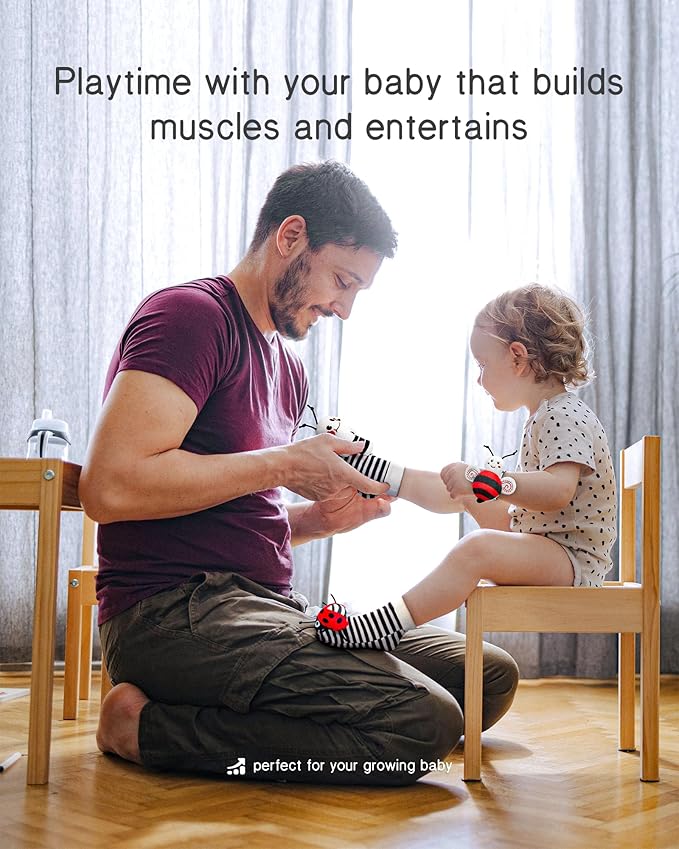 - LOUDER ENCHANTING RATTLE - The rattle socks and wrist rattles with contrasting patterns, bright colors and improved with louder enchanting rattle sound will stimulate baby vision, interaction and exploration.