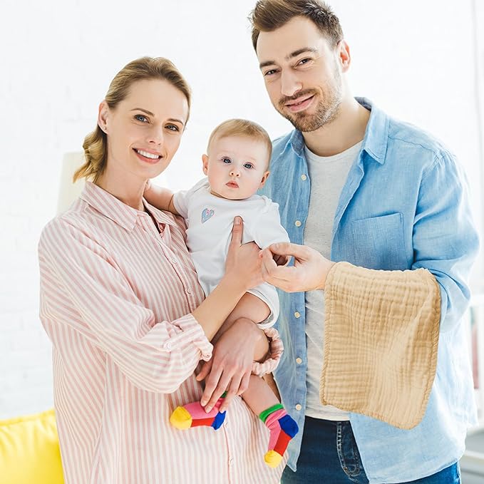 12 Pack Muslin Burp Cloths - Large 20" x 10", Ultra Absorbent 100% Cotton for Baby Drool and Messes - Soft, Gentle Baby Burp Rag for Boys & Girls -Brown