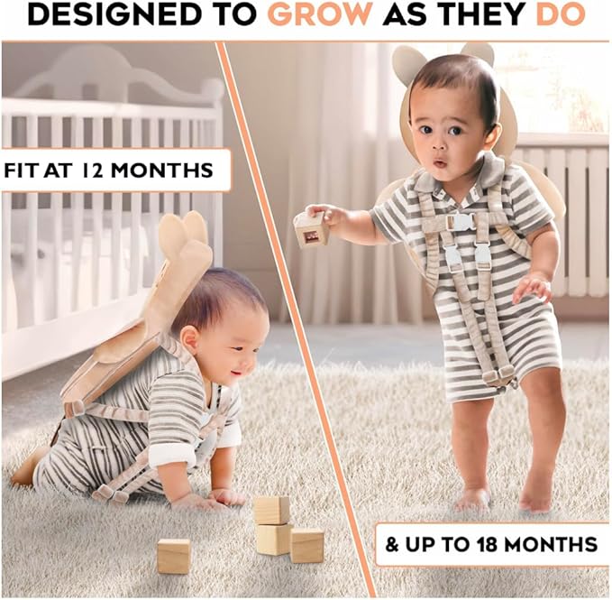 - CUSTOMIZABLE FIT WITH ELASTIC STRAPS: Featuring adjustable chest and shoulder straps with elastic, this head protector for baby crawling provides a snug and comfortable fit for your baby. As your baby grows, the straps can be easily adjusted to accommodate their changing size and shape, maintaining optimal safety and comfort.