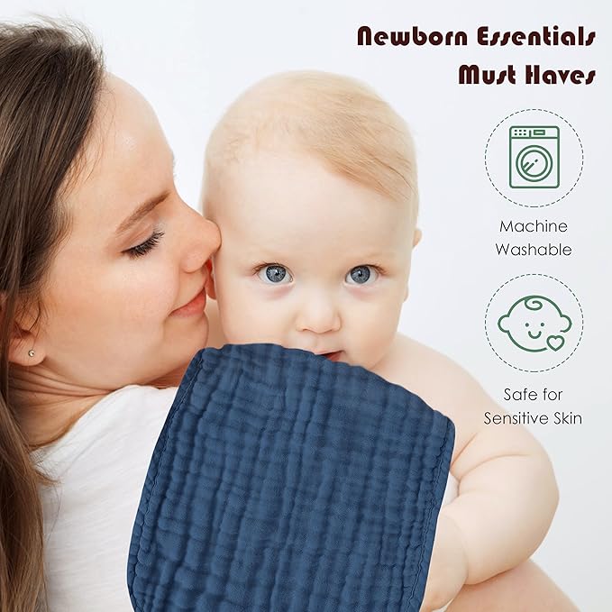 Muslin Burp Cloths 100% Cotton Large 20''x10'' Extra Soft and Absorbent Baby Wash Cloths Spit Up Rags - Baby Burping Cloth for Boys Girls Items(12 Pack Navy Blue)