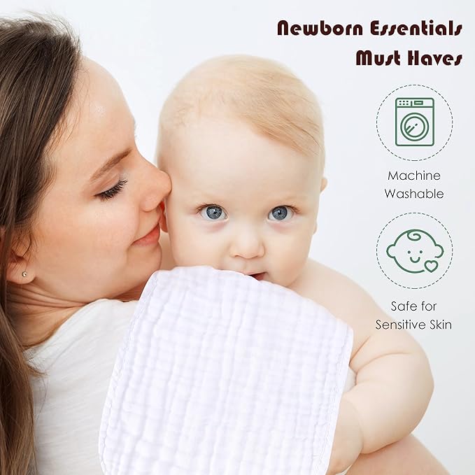 - EASY CARE & BABY MUST HAVES: Machine washable below 70°C, these cloths are easy to clean and maintain. The reinforced edges prevent unraveling, ensuring they stay in shape and get even softer with each wash. For best results, use a laundry bag to prevent cotton yarn from catching or loosening.
