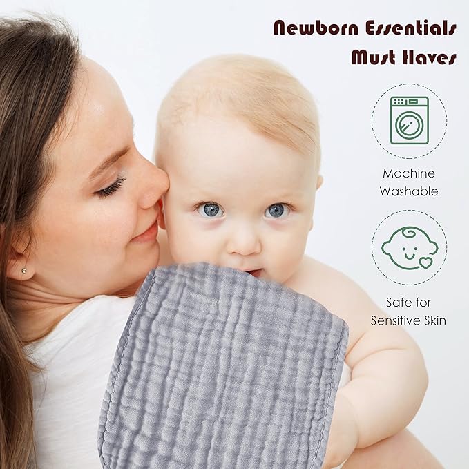 - SUPER ABSORBENT: Featuring muslin design, these baby washcloths offer superior softness, breathability, and absorbency. The quick-drying fabric is perfect for keeping baby's skin dry and comfortable.