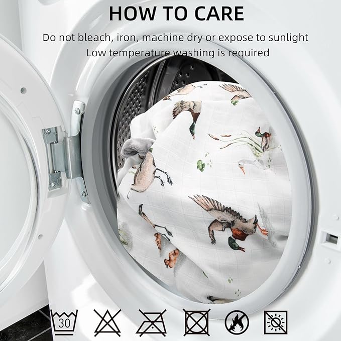 - 【How to Care】: Do not bleach, iron, machine dry or expose to sunlight, high temperature would cause deformation of blanke. Muslin fabric is very soft and delicate. Be careful when handling as it can easily snag on zippers. The best way is using gentle machine wash with laundry bag, air dry in a cool place after dehydration.