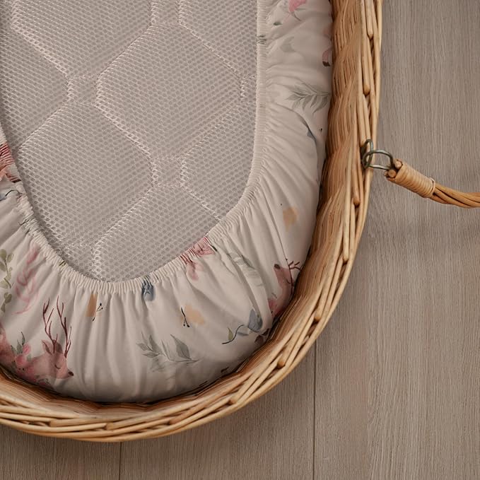 - SUPER SOFT FABRIC: Our baby bedding bassinet sheets are made of soft and breathable fabric that best fits the standard bassinet crib. The elastic band surrounds the mattress, so mothers will not worry that it will slip away, creating a comfortable and stable sleeping space for the baby. Rest assured, every product meets the OEKO-TEX Standard 100 and is safe for babies