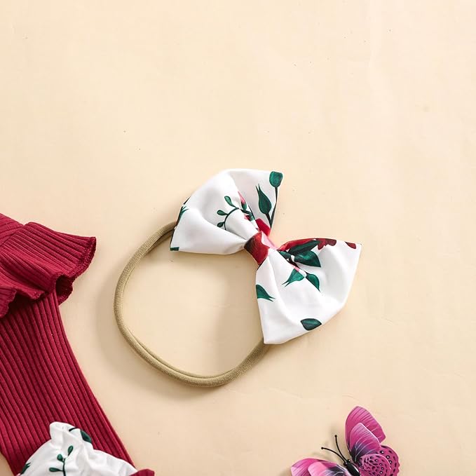 Baby Girls Clothes Ribbed Romper Bodysuit Pants Headband Set Fall Winter Outfits