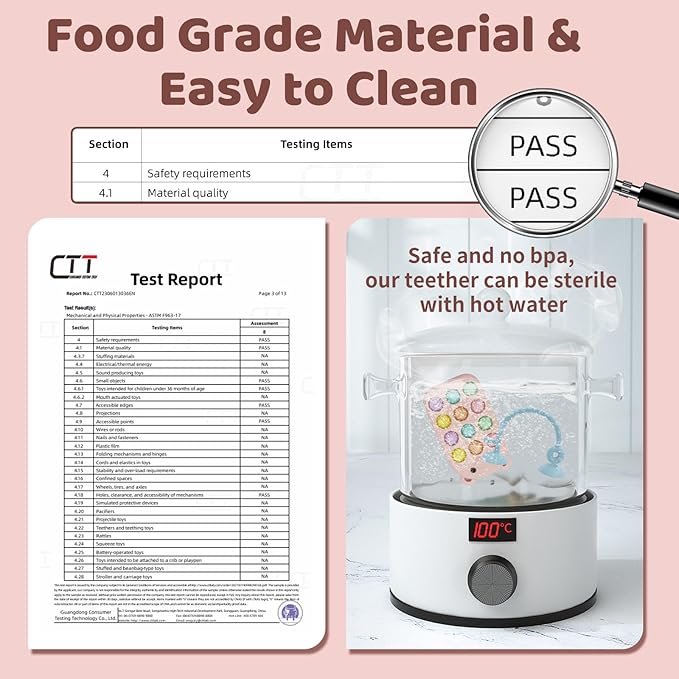 - Food Grade Soft Silicone - Teether toys is BPA free food grade silicone, which is easily cleaned with diswasher or handwash.
