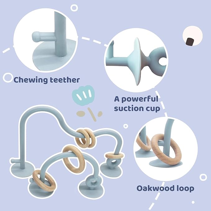 Baby High Chair Suction Toys Teething Chew - Baby Teething Toys Silicone Teethers Table Toys, Food Grade Silicon for 6 12 18 Months (Blue)