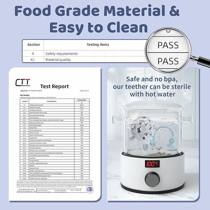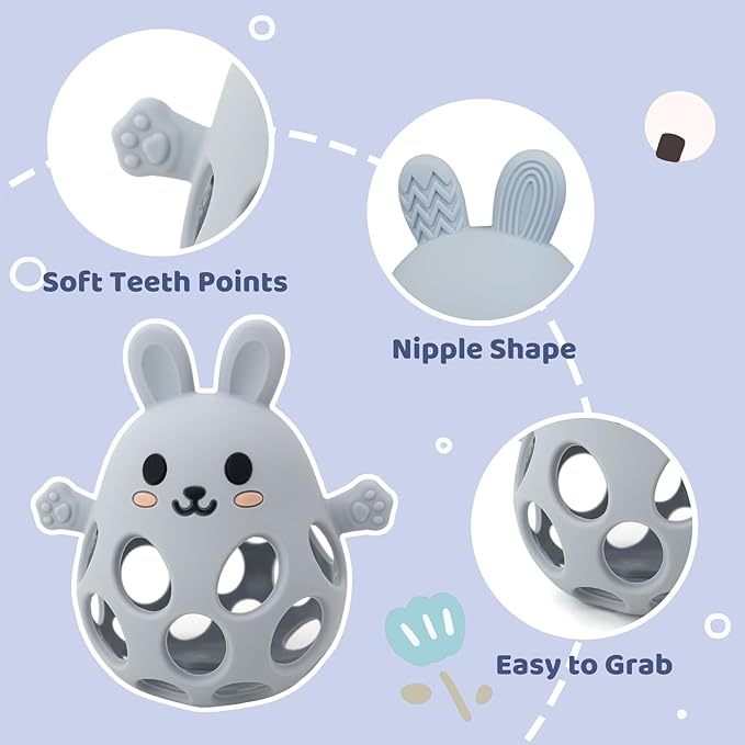 - Food Grade Soft Silicone - Teether toys is BPA free food grade silicone, which is easily cleaned with diswasher or handwash.