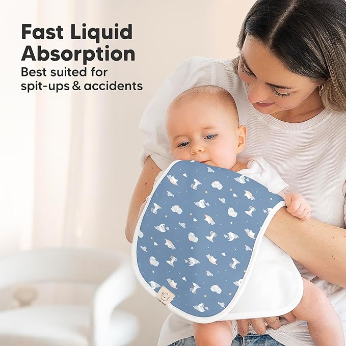 Organic Burp Cloths Baby Boy & Girl - 5-Pack Super Absorbent Cotton Burping Cloths for Babies, Soft & Plush Newborn Spit Up Rags, Infant Towels for Milk Spit Up, Unisex, Large 21" x 10" (Dreamers)