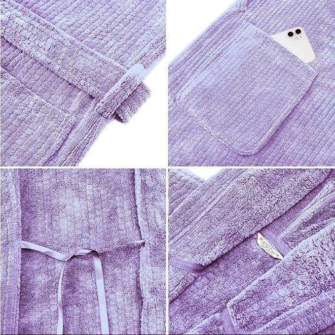 • HOODED BATHROBES WITH POCKETS: The hood is perfect for keeping the head warm during the chilly mornings. Slip front pockets are perfect for storing all your stuff with convenience, or just for keeping your hands warm in this bathrobe