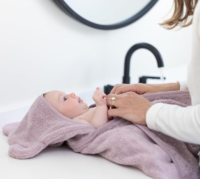 Bella Tunno Baby Bath Towel and Wash Mitt Set – Soft Absorbent Hooded Towels and Mitt-Style Baby Washcloths, Oeko-TEX Certified (Orchid)