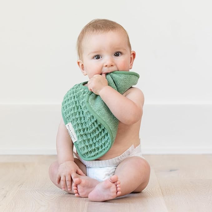 - SOFT, ABSORBENT FABRIC: Our baby boy and baby girl bibs and burp rags are made with 100% waffle cotton on one side, while the terry fabric side is made with 70% cotton and 30% recycled polyester, making them soft, absorbent, and easy-to-clean.