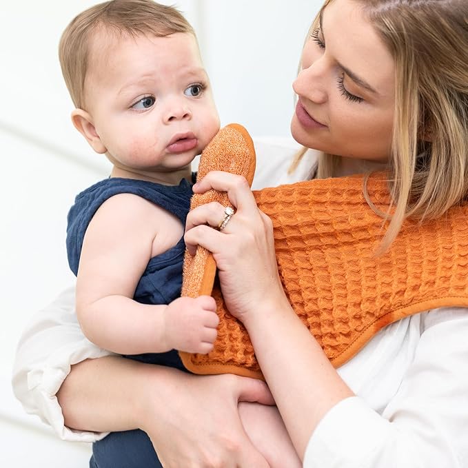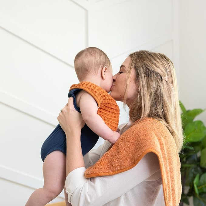 - SOFT, ABSORBENT FABRIC: Our baby boy and baby girl bibs and burp rags are made with 100% waffle cotton on one side, while the terry fabric side is made with 70% cotton and 30% recycled polyester, making them soft, absorbent, and easy-to-clean.