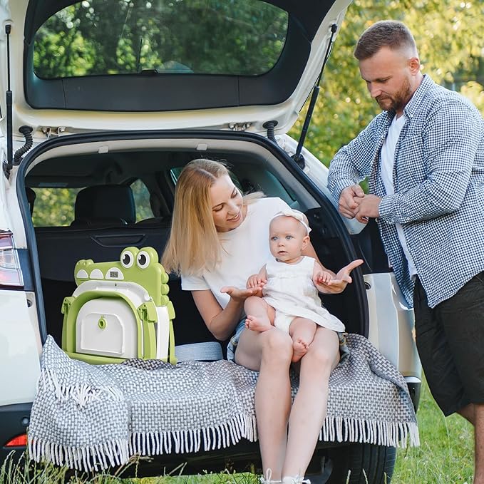 - 【Cute and Functional】The alligator-themed collapsible baby bathtub, complete with thermometer, hooded towel, and soft floating cushion, was certainly eye-catching and added a fun touch to bath time.