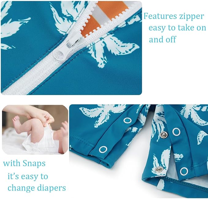 - BOTTOM BUTTON: The baby boy's one-piece rash guard with snap button at the bottom, parents love the snap leg opening for convenient diaper changing