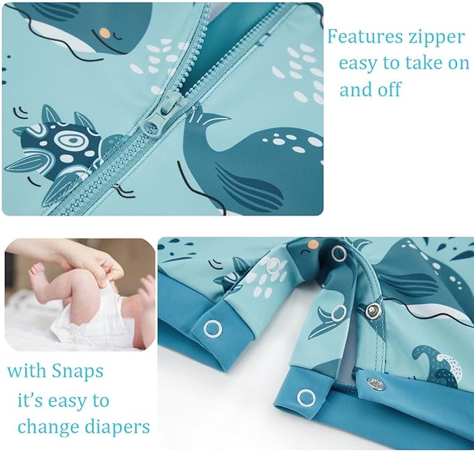 - BOTTOM BUTTON: The baby boy's one-piece rash guard with snap button at the bottom, parents love the snap leg opening for convenient diaper changing