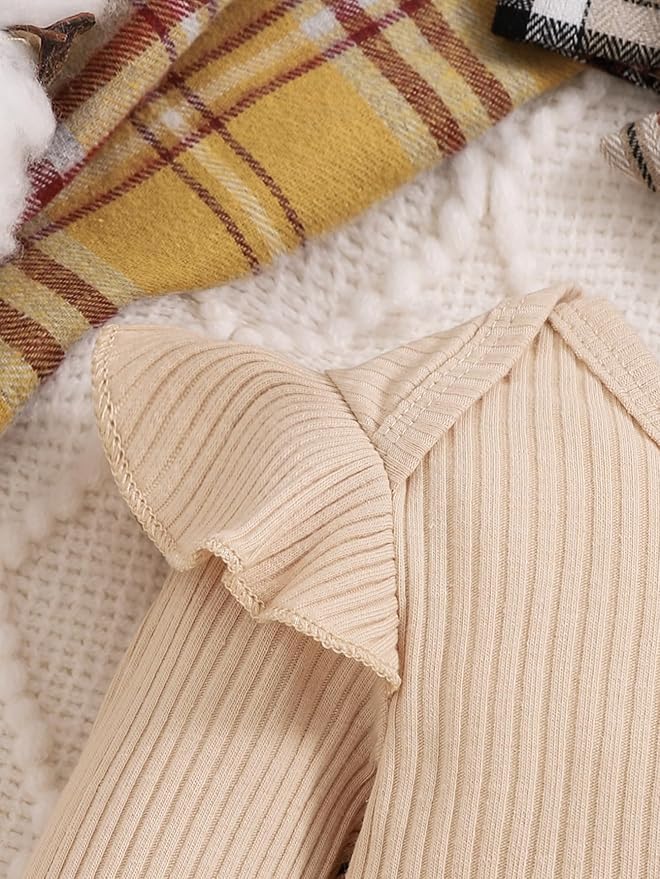 - Fashionable Classic Design:Adorable flower ruffle romper top/pant + solid pant/shirt matching cute bow knot headband and hat express great love from family.Convenient Snap closure for easy diaper changes.