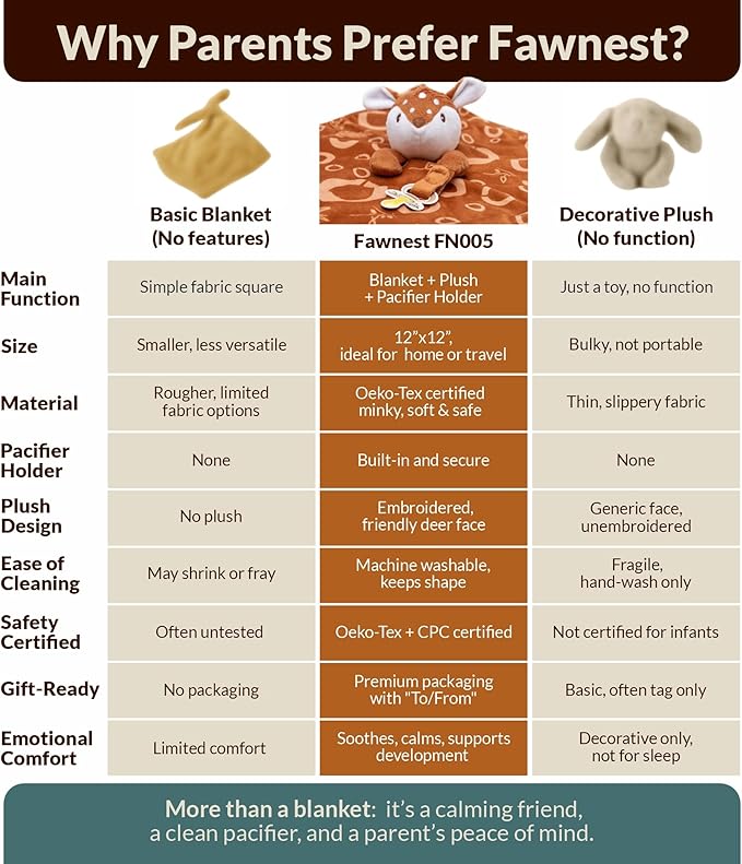 - STYLE - The Baby Lovey Security Blanket with a custom Fawnest pattern offers comfort and style, enhancing any nursery while keeping newborns cozy and secure.