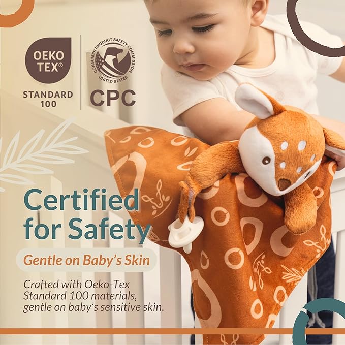 - SAFETY - Hypoallergenic and Safe: Made from Oeko-Tex Standard 100 materials, this security blanket protects newborns’ skin, offering comfort and security for baby boys and baby girls.