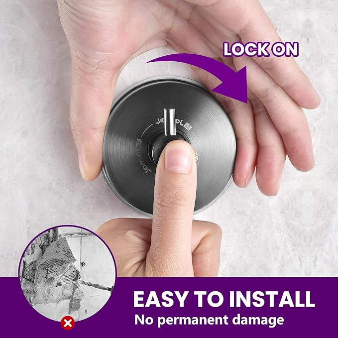 - Innovative Suction Cup Holder Design: JOMOLA Strong Vacuum suction hooks holder allow you to install at any corner of the house. No tools, no drilling, no surface damage. Overload-maximum weight 5KG (11lbs).