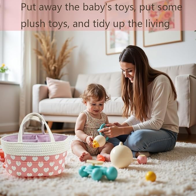 - Flexible storage design: The interior of the basket is equipped with a detachable three-partition design, which can be freely adjusted according to needs, making it convenient to classify and store items. This design allows you to easily organize baby diapers, clothes, toys or household sundries, effectively avoiding clutter and ensuring a clean and orderly space
