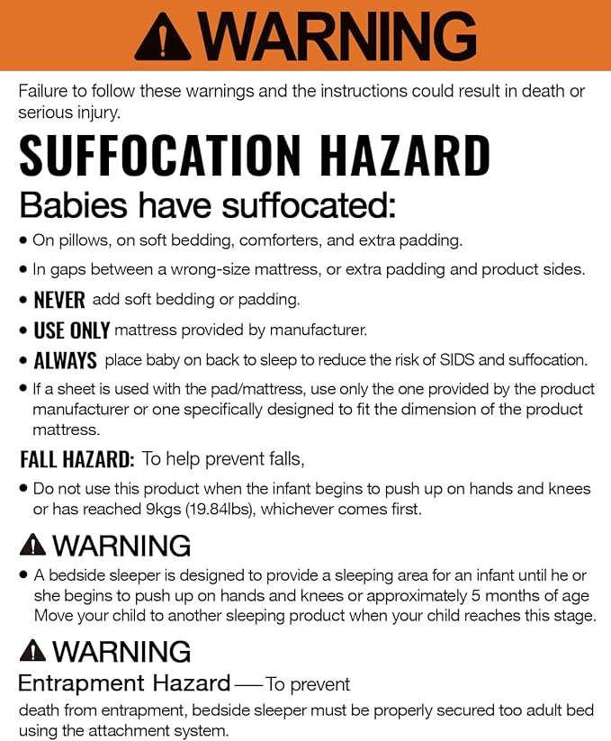 - Safe and Stable Frame: The baby bedside sleeper is made of painted iron and reinforced construction, undergoing strict testing standards. It can be assembled or disassembled in a few minutes.Baby Bassinet must not be tilted or inclined during use.Never leave your child unattended,please use under adult supervision.