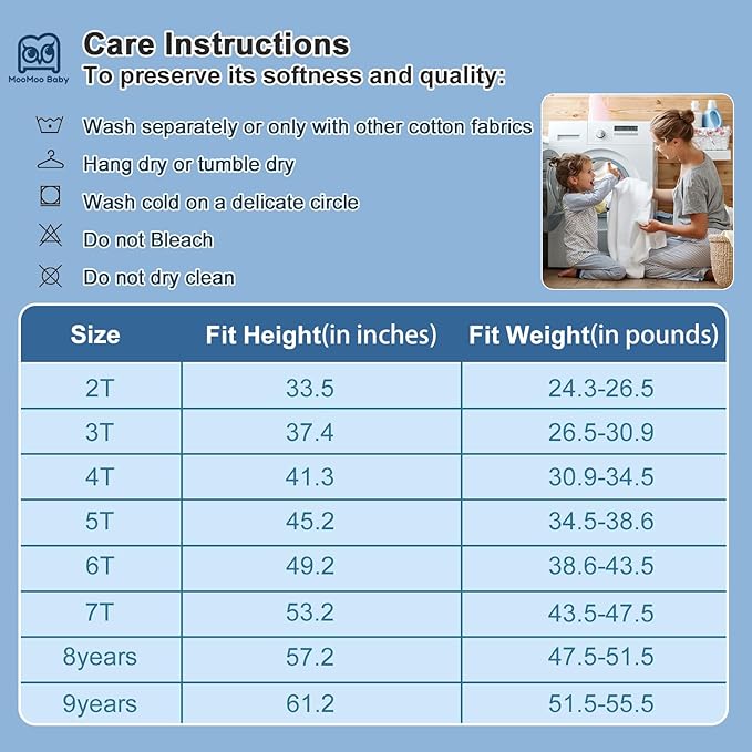 - Big Size Available Now 2T-9T: 2T (waist 13.4in, height 33.5in, weight 24.3-26.5lbs), 3T (waist 14.2in, height 37.4 in, weight 26.5-30.9lbs), 4T (waist 15in, height 41.3in, weight 30.9-34.5lbs), 5T (waist 15.8inches,height 45.2in, weight 34.5-38.6lbs). 6T (waist 16.6inches,height 49.2in, weight38.6-43.5bs). 7 Years=7T (waist 17.4inches,height 53.2in, weight43.5-47.5bs). 8 Years=8T (waist 18.2inches,height 57.2in, weight47.5-51.5bs). 9 Years=9T (waist 19inches,height 61.2in, weight51.5-55.5bs)