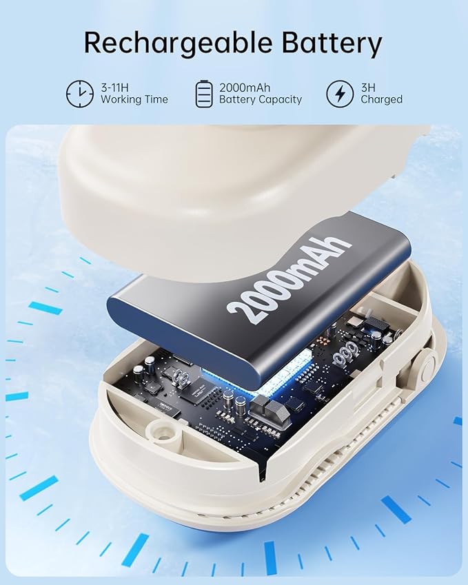 - Long-Lasting Rechargeable Battery: Equipped with a 2000mAh battery, this fan offers 3-11 hours of continuous use. Perfect for outdoor activities, offices, and more – reusable and reliable.