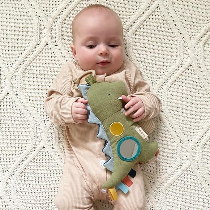 Itzy Ritzy Bitzy Traveler Car Seat & Stroller Toy for Babies – Developmental Sensory Toy Features Crinkle & Rattle Sounds & Multiple Textures –Hanging Travel Toy for On-the-Go Entertainment (Dinosaur)