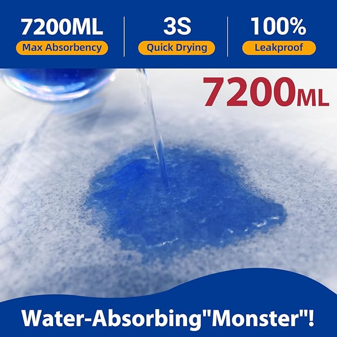 - Super Absorbent Pads: Premium disposable bed pads are 10x more absorbent than traditional pads,This disposable pads can lock in a large amount of liquid instantly,heavy duty chucks realize 3 Seconds flash dry absorbs,keeps you dry all the time