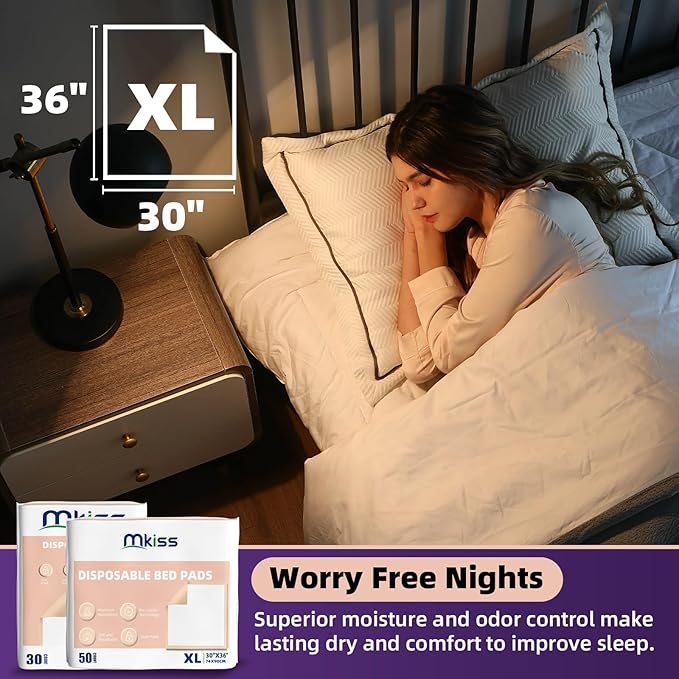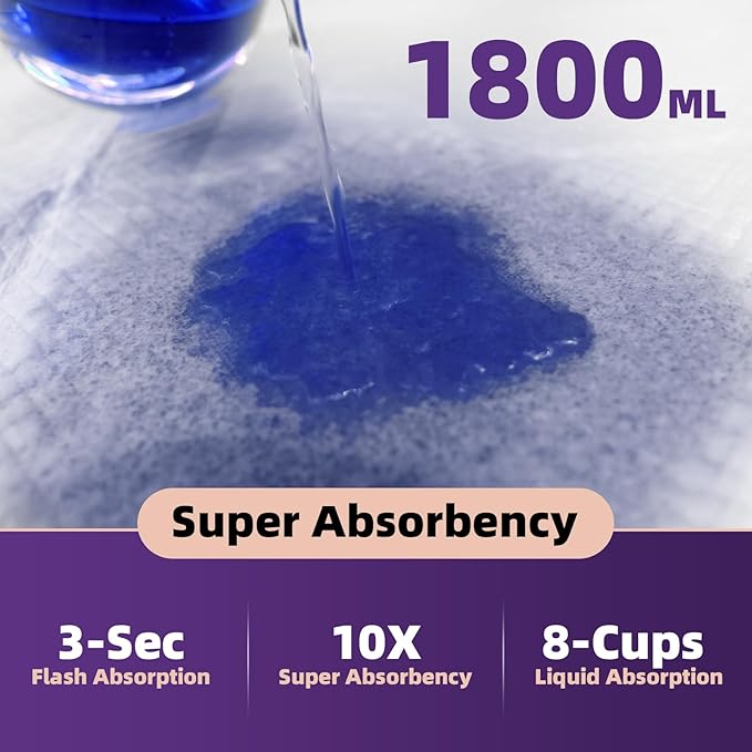 - Super Absorbent with 6-Layer Protection: MKISS disposable bed pads feature a super absorbent polymer core, locking in up to 1800ml of liquid instantly.Perfect for adults, elderly, babies, and pets, these incontinence pads absorb quickly, keeping surfaces dry without swelling or leakage