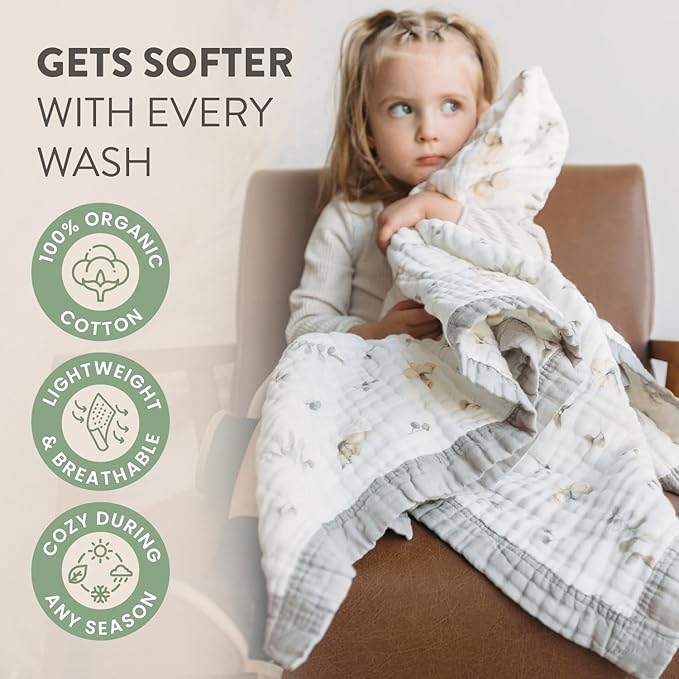 - 10 Layers of Buttery Soft Organic Cotton: After years in fashion, I learned that true quality is about intention - every layer, every thread; This muslin blanket is my love letter to intentional design - luxuriously soft, breathable, and oh-so gentle against sensitive skin
