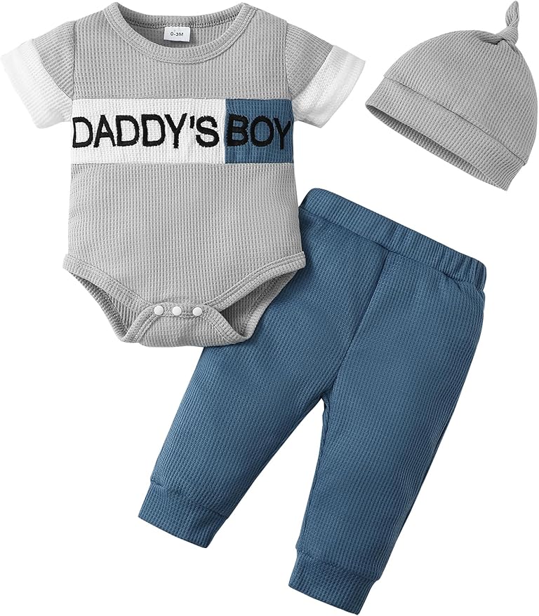 - Baby boy romper +pants+matching cute hat 3pcs. pretty gift for newborn baby boy.your little one will get lot of compliments!