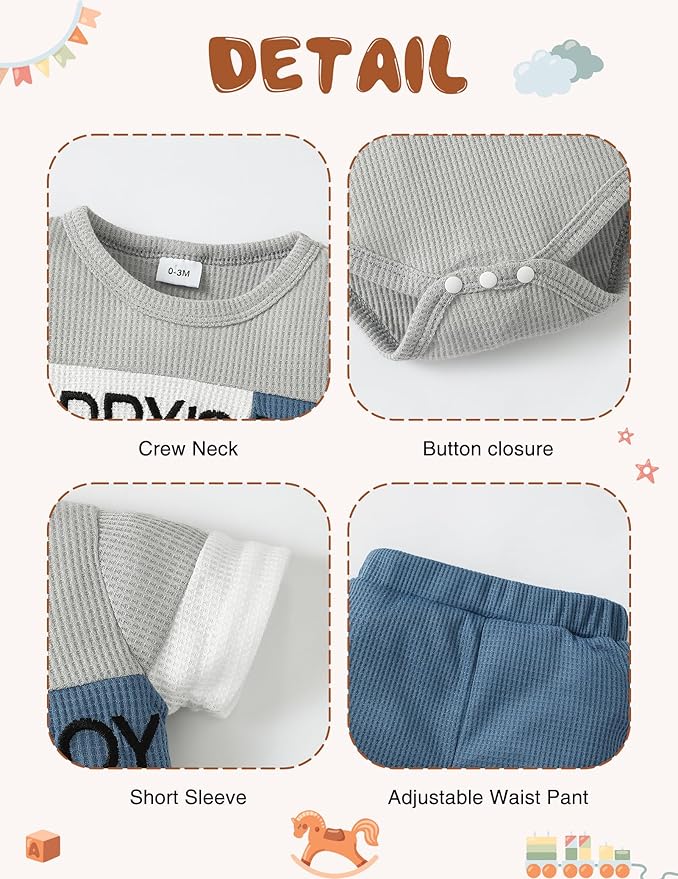 - Cute Baby Boy Clothes Material:baby boy clothes due to its softness, breathe and hypoallergenic properties. It is gentle on the baby's skin and helps regulate body temperature.