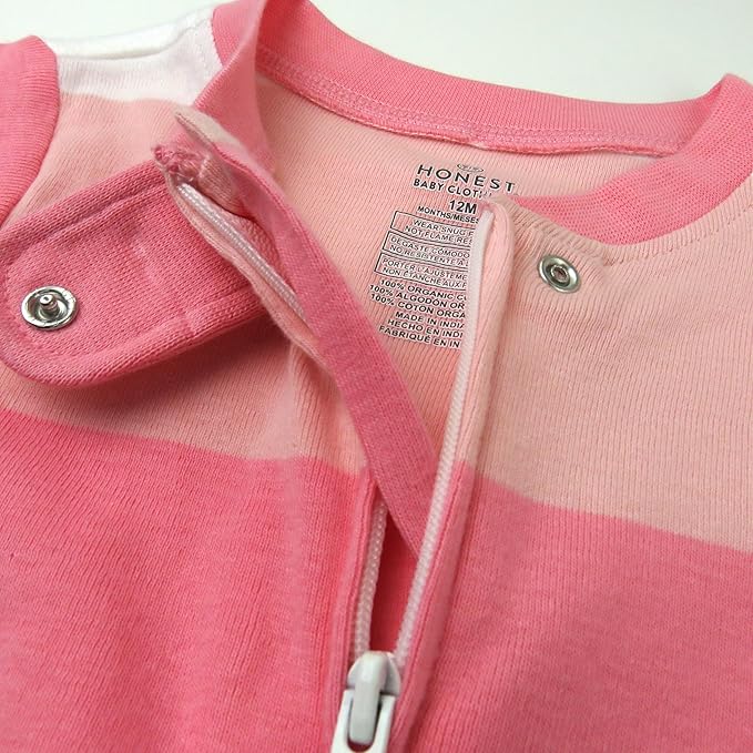 HonestBaby 2-Pack Non-Slip Footed Pajamas One-Piece Sleeper Jumpsuit Zip-Front Pjs 100% Organic Cotton for Baby Girls