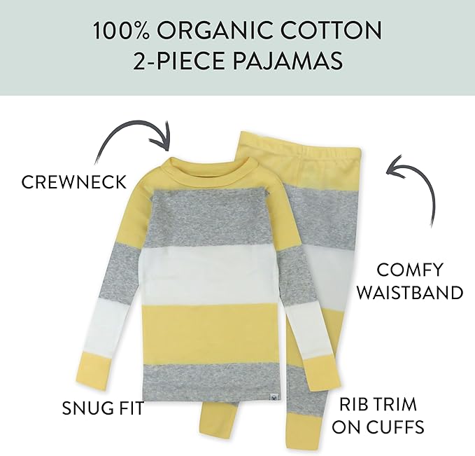 HonestBaby 2-Piece Pajamas Sleepwear Pjs 100% Organic Cotton for Baby, Toddler, Kids, Boy