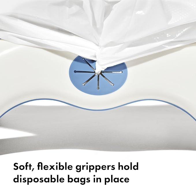 - Flexible flaps hold disposable bags in place, can accommodate standard plastic bags
